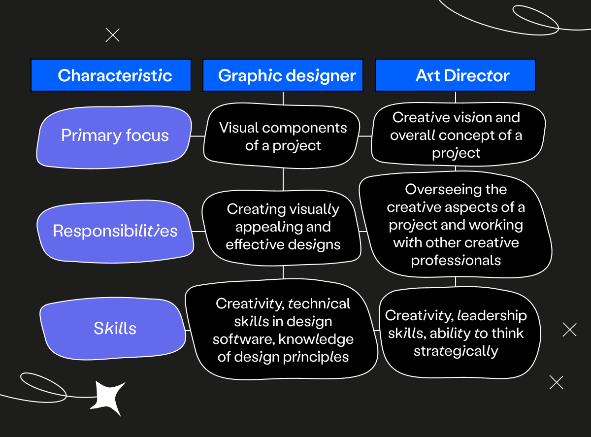 While it’s totally possible to progress from graphic designer to art director if that’s what you aspire to, it’s essential to get familiar with the differences between them and what’s required of each role. This will help you decide whether an art director career is right for you and allow you to focus on developing the skills you need to become one.