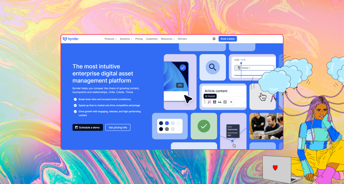Digital asset management (DAM) is both a process and a tool that helps marketing teams organize, store, and easily access all their digital content in one place. This includes a vast range of assets, like: