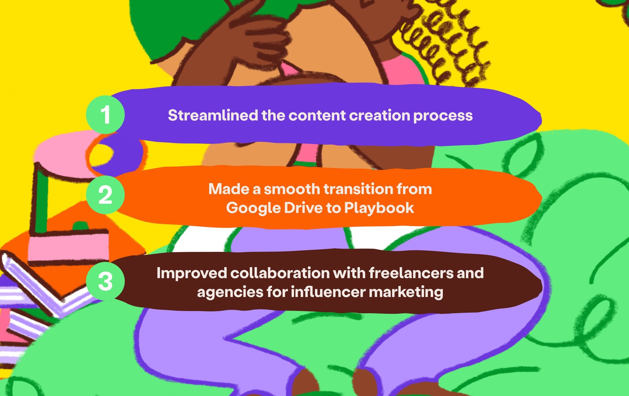 With so many creative assets stored in Google Drive, Zoe was understandably hesitant about migrating everything to Playbook. Thankfully, their customer support wizard, Alex, seamlessly transferred all their files. It was a huge help because knowing where to start can feel impossible with so many important files on the line.