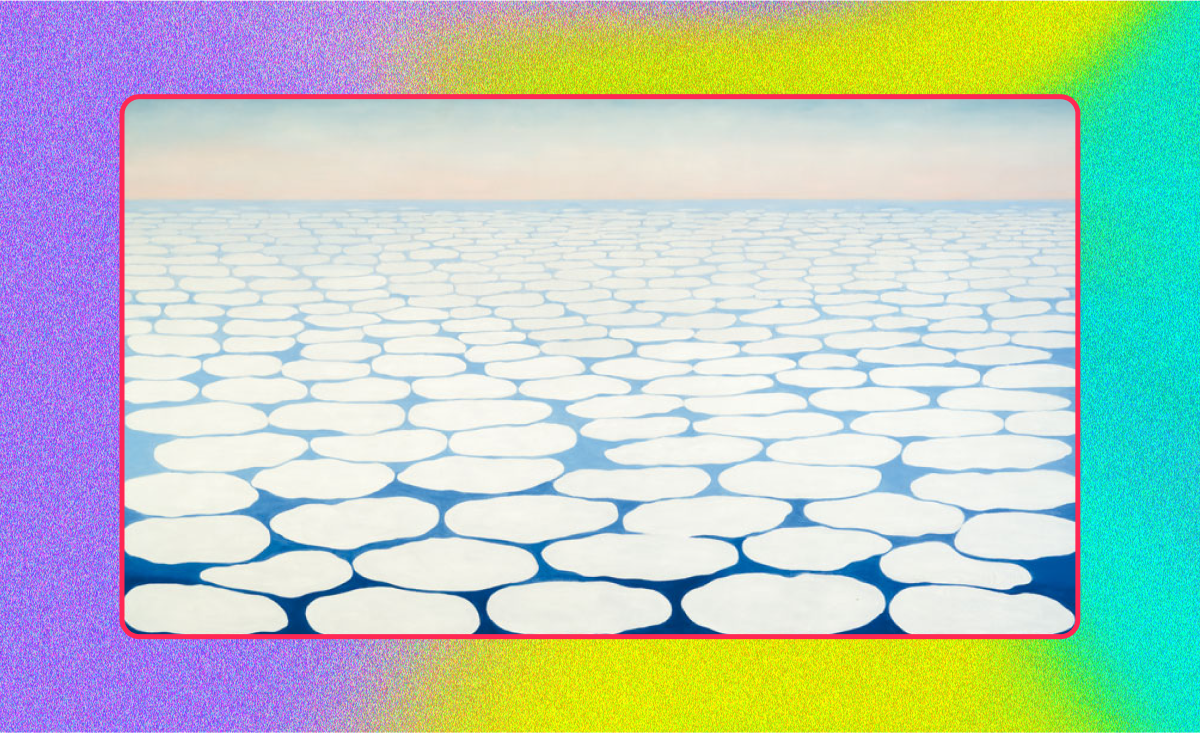 Gradient backgrounds, like Georgia O’Keeffe’s ‘Sky Above Clouds IV,’ with its beautiful gradient from light to dark hues, can create a dynamic feel.
