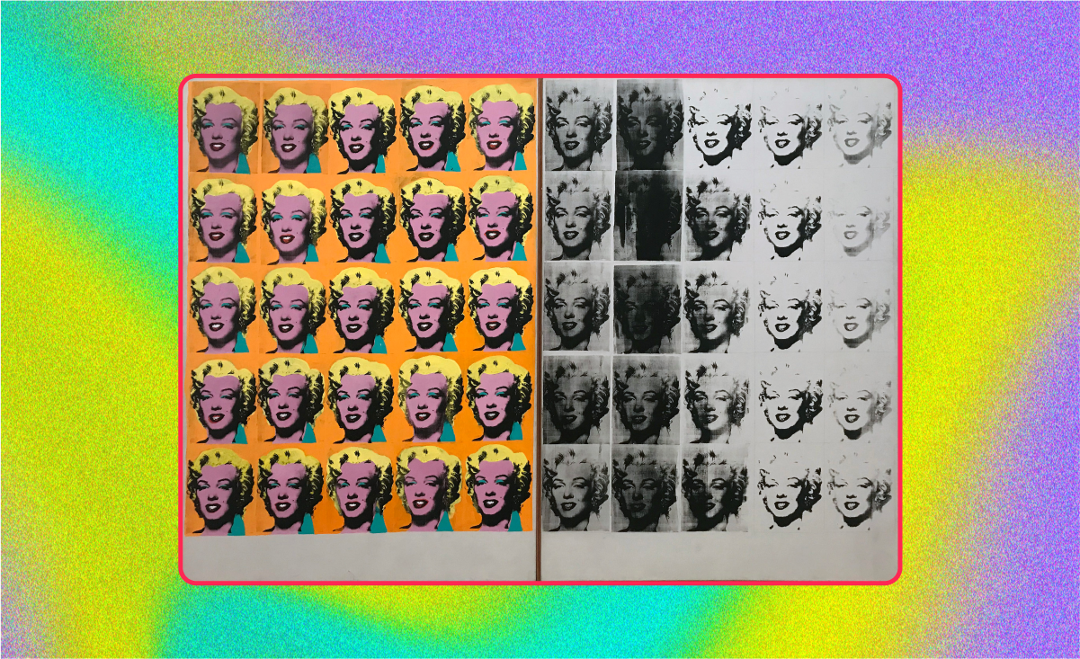 Solid color backgrounds provide simplicity, such as Andy Warhol’s ‘Marilyn Diptych,’ which uses a solid color background to highlight the central figure.