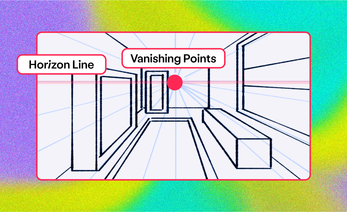 You can create perspective using vanishing points — points on the horizon line of the image that help create the illusion of depth. There are usually one, two, or three vanishing points — here’s how to use them: