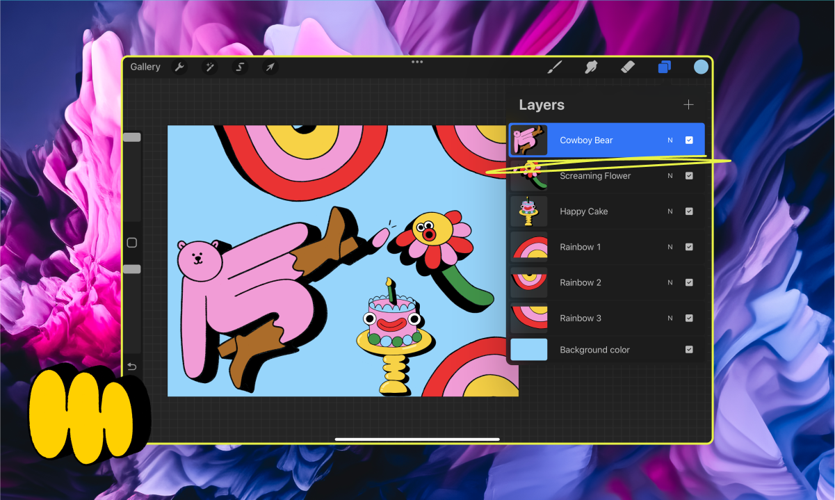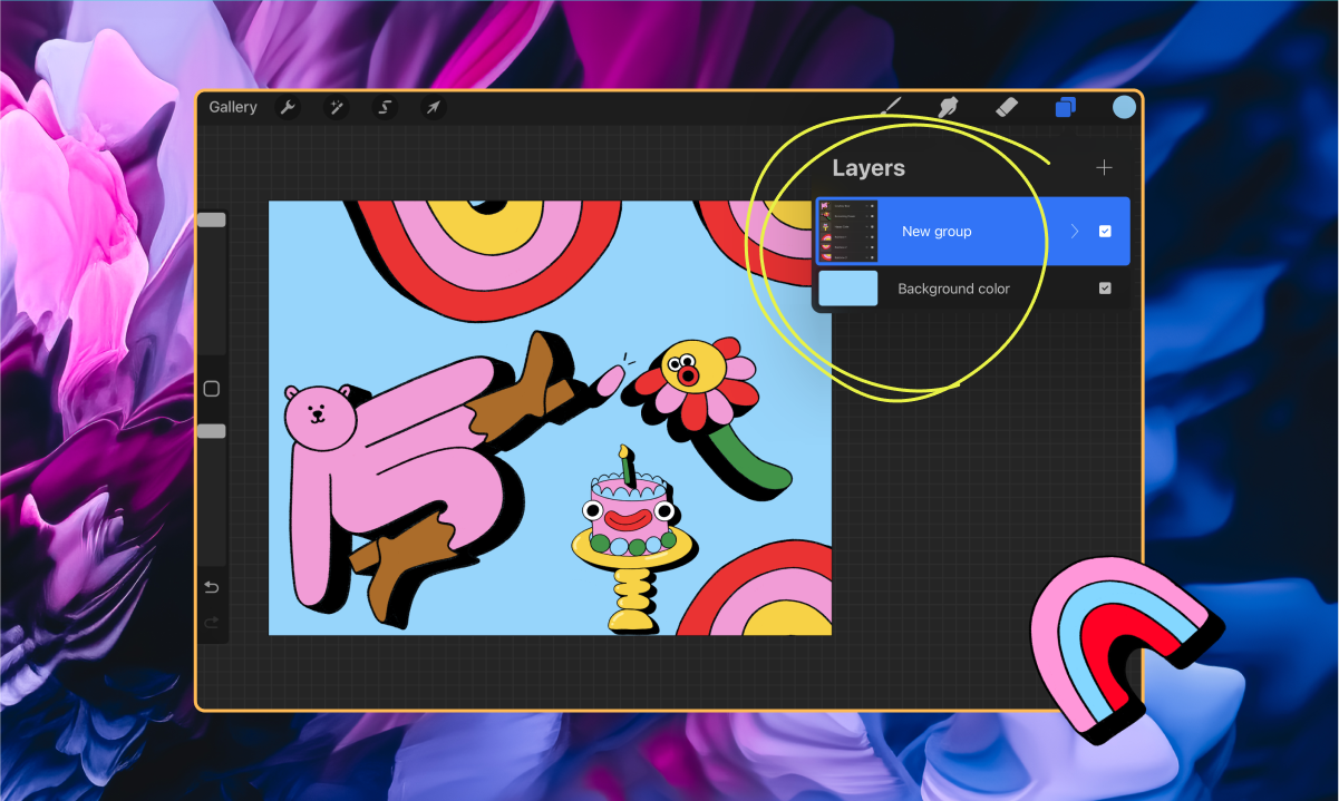 Layer order, or the arrangement of layers in the layer stack, plays a critical role in how your artwork is composed. Layers in Procreate are arranged with the topmost layer in the stack appearing in front of all others.