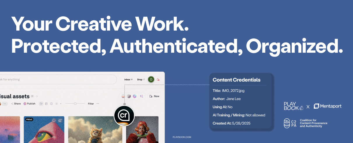With the new Mentaport miniapp, Playbook becomes even more than your go-to space for organizing and collaborating on visual content. It’s now your hub for creating and protecting your work’s digital identity. Here’s what you can do, starting today:
