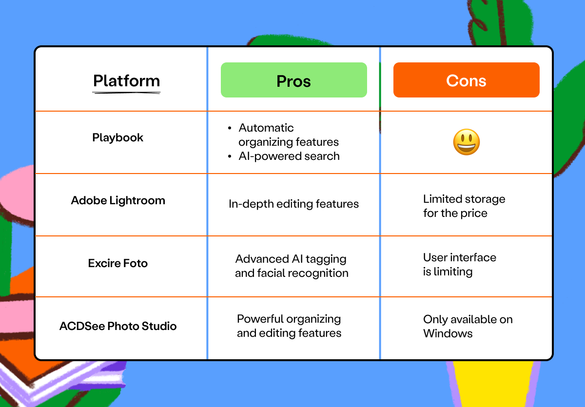 The best photo organizing software for you depends on your unique needs and goals — check out how Playbook stacks up against other popular platforms to help you make your decision.