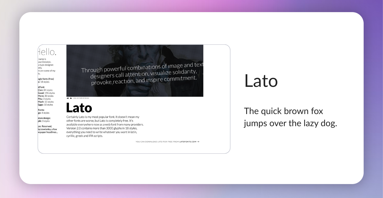 Warm, approachable, and extremely versatile, Lato is a designer favorite. Created by Łukasz Dziedzic in 2010, it works across weights and sizes, making it a safe bet for body text.