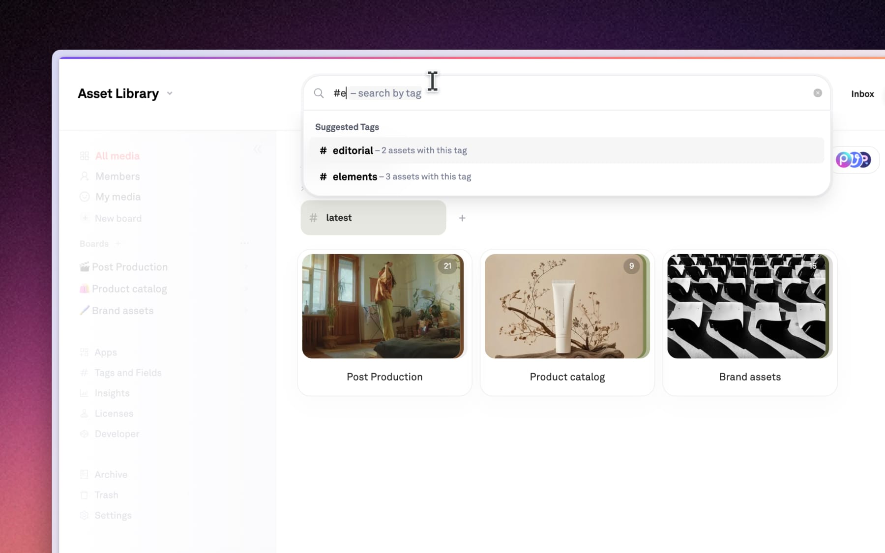- Filename search: Quickly find an asset by typing its name (e.g., "Summer_Campaign...")